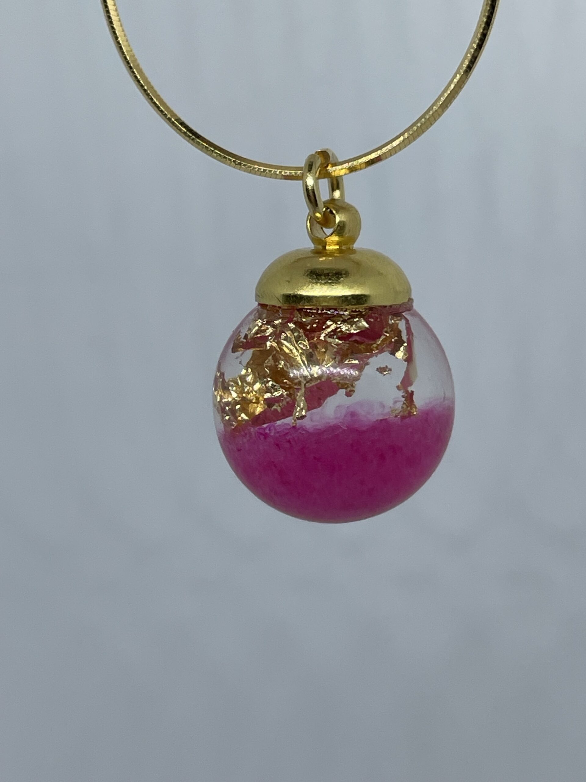 Magical bright pink cotton candy sugar with gold leaf, on a gold plated snake necklace